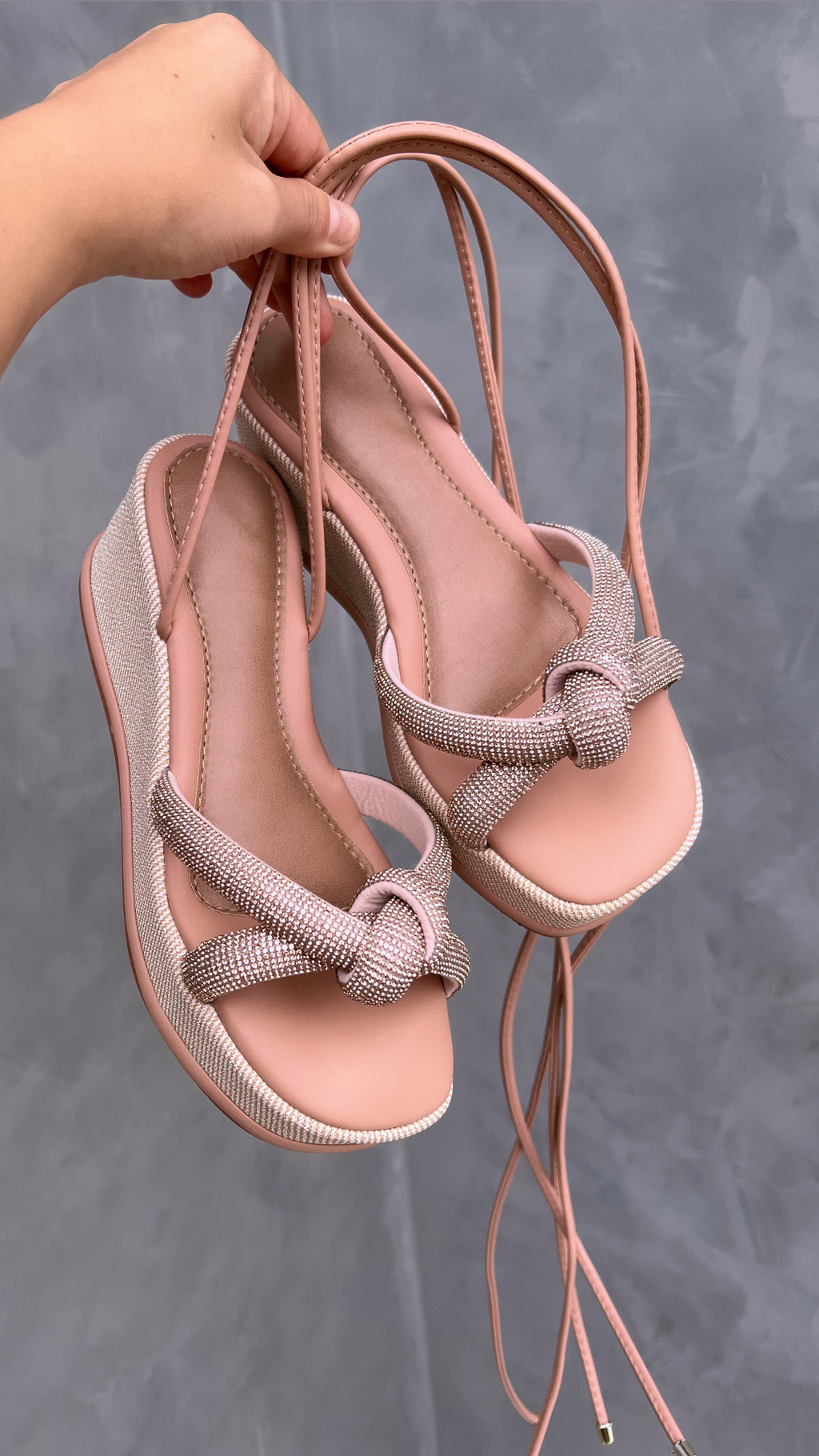 Não perca a chance de iluminar seus passos com a Ana Bela Nó Júlia Amarração com Strass - Nude!